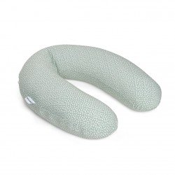 Almohada en forma de herradura que garantiza la máxima comodidad y mantiene al bebé a la altura ideal durante la lactancia materna o el biberón. Está compuesto por microesferas en su interior y un exterior de algodón orgánico flexible y esponjoso adaptable a cualquier posición. A su uso como cojín de lactancia añade su capacidad para ofrecer sujeción en la espalda, las piernas y el vientre durante el embarazo.