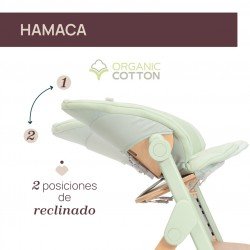 El tejido de la hamaca está hecho de algodón orgánico para proporcionar la máxima suavidad y comodidad.