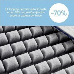 El Ecus Care, es el único colchón con certificado sanitario para la prevención de la plagiocefalia. El Topping permite reducir hasta en un 70% la presión ejercida sobre la cabeza del bebé.