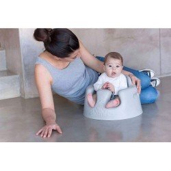 Bumbo, el asiento de suelo, estabiliza al niño con una ligera flexión de la cadera, colocando la pelvis en una inclinación pélvica que facilita la extensión lumbar. Además, la suave curva de la parte posterior del asiento coincide con la curva natural de la caja torácica.