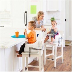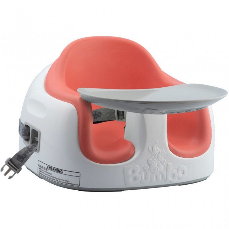 Las correas retráctiles Bumbo de la silla permiten que el bebé se una al resto de la familia en la mesa de la cocina, mientras que la base ajustable en altura y la amortiguación de espuma extraíble permiten que el asiento multiusos crezca con su hijo.