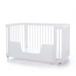 Entre los 2 y 3 años, cuando tu bebé ya tiene cierta autonomía, es el momento de convertir la cuna en una camita Montessori, a ras de suelo, quitando la barrera grande y colocando la barrera junior (incluida) para que tu bebé pueda entrar y salir de la cama por si solo. Podrás optar por tener la camita con o sin ruedas.