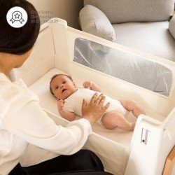 La minicuna colecho Hera está especialmente diseñada para proporcionar un sueño nocturno seguro, protegido y cómodo para ambos. El panel desplegable permite máxima visibilidad y facilidad de acceso a tu bebé.