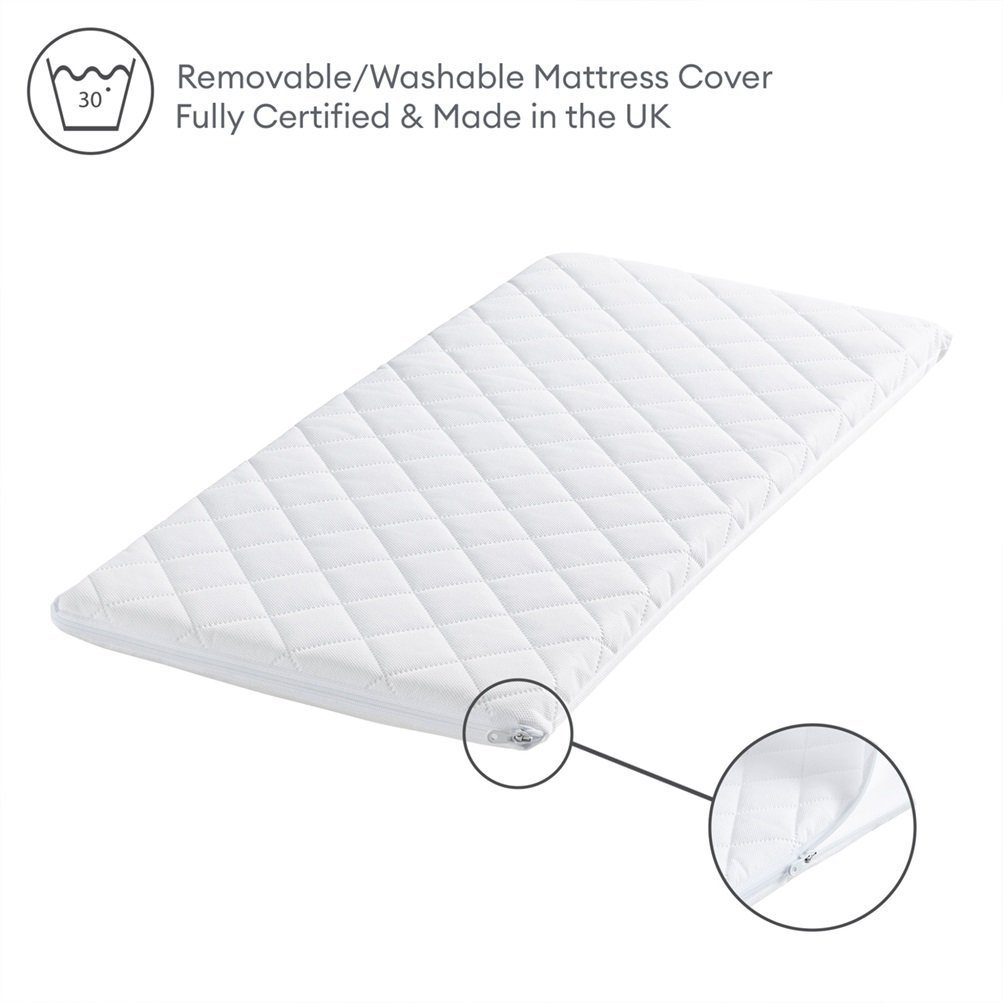 La cuna Hera viene completa con un colchón de calidad superior fabricado en el Reino Unido. Libre de productos químicos nocivos, el colchón cuenta con espuma Kidtech que brinda un soporte excelente y ayuda a regular la temperatura corporal.