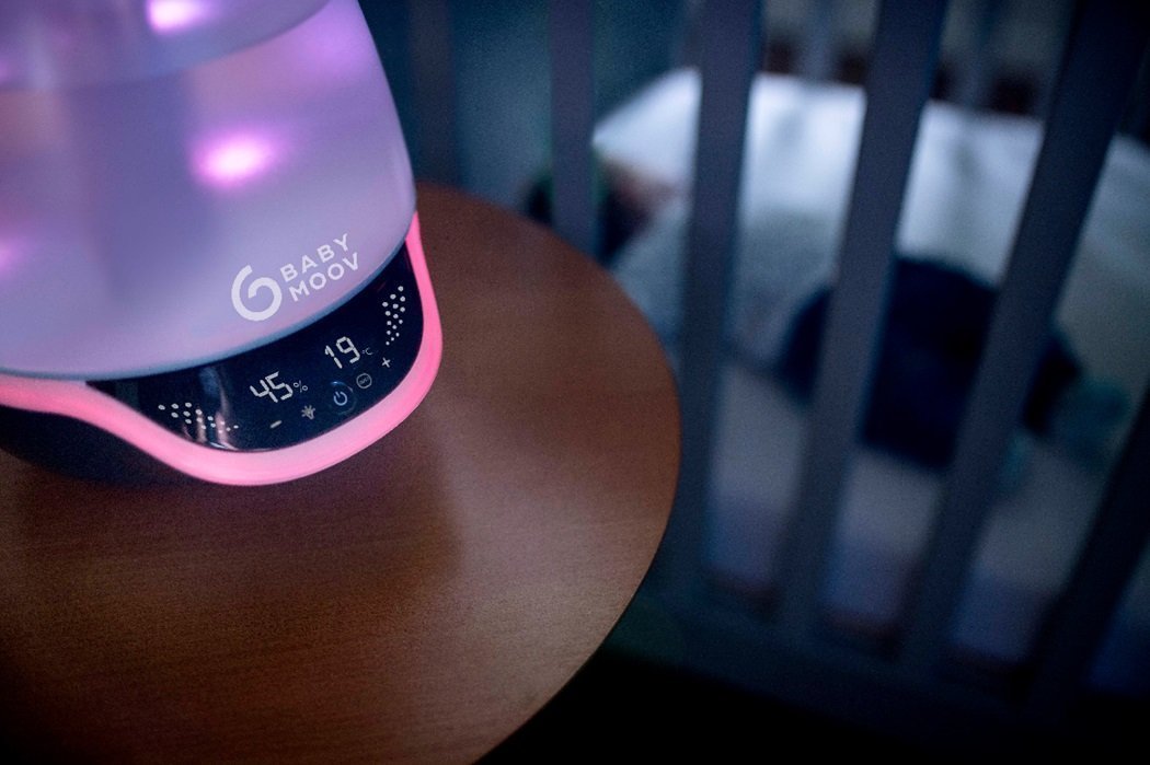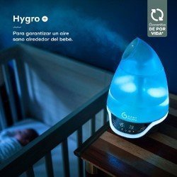 El humidificador de aire Hygro(+) te permite controlar el ambiente de la habitación de tu bebé al tiempo que le garantizas un aire sano mientras duerme.