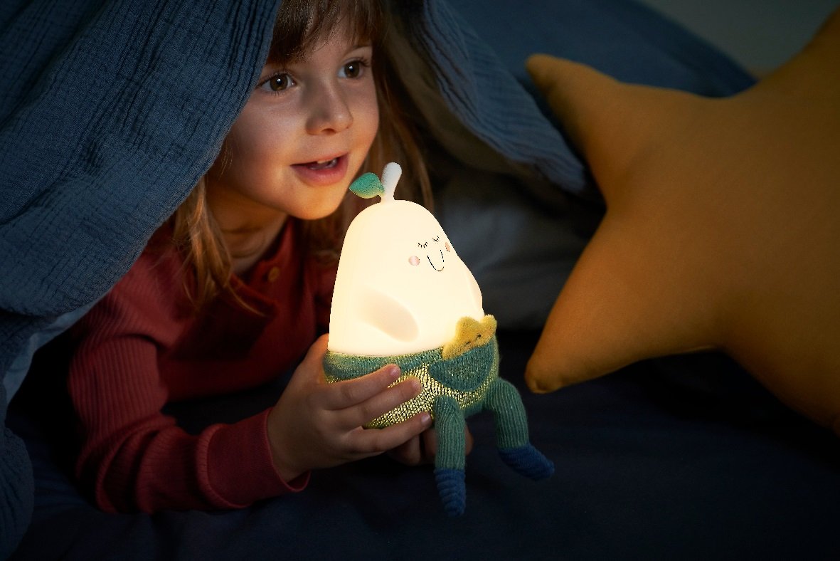 Con sus 3 modos de luz suave (luz blanca, 6 colores en bucle, color fijo), reconfortará al bebé. Gracias a Bertille y a su autonomía de 10 horas, ya no tendrás que levantarte en mitad de la noche para ayudar a tu bebé a encontrar su chupete. Al estar equipada con una batería recargable, podrás llevártela a todas partes, para que tu bebé duerma tranquilo.