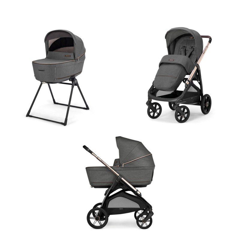 El coche silla Aptica es el System de Inglesina con posiciones de paseo y descanso que se adecua al crecimiento del bebé desde que nace hasta que pesa 22 kg (4 años)