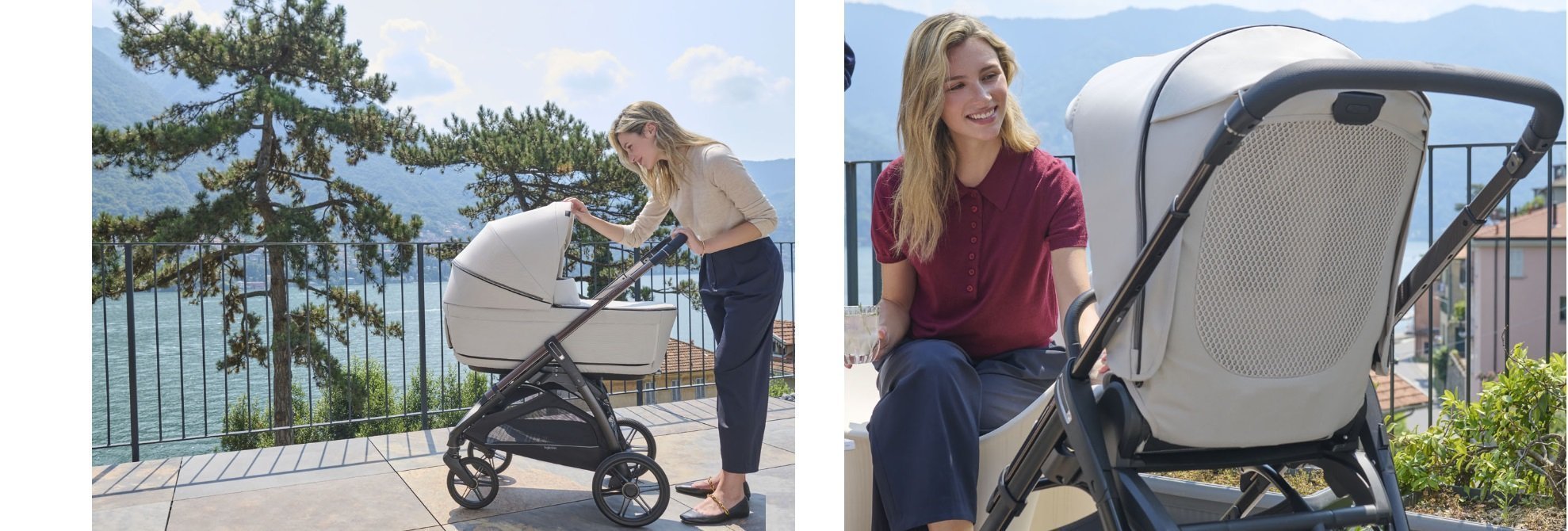Gracias al exclusivo sistema patentado de Inglesina, el chasis se abre y se cierra con una sola mano con el asiento instalado en cualquiera de las dos direcciones. Una vez cerrada, la sillita se mantiene en posición vertical de forma autónoma, con lo que se evita que el manillar y el tejido toquen el suelo.