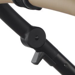 Asa de transporte de aluminio oval incorporada en la capota con protección de PU leather a juego con el tapizado.