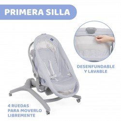 4 en 1: Moisés de Día (0 M+), Hamaca (0 m+), Trona (6 M+) y Primera Silla (6 M+).