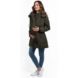El abrigo porteo Wombat Shell es 4 en 1: uso como abrigo premamá, abrigo porteo delante y espalda, y normal.