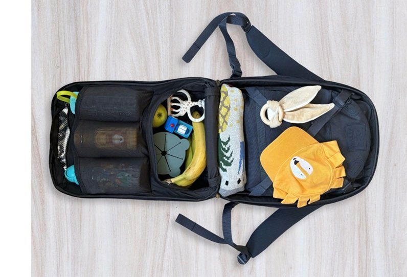 Espacio exclusivo para guardar la mochila portabebés de hombros.