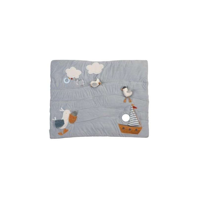 El pelícano tiene divertidas alas rugosas y la pequeña gaviota comienza a sonar cuando el bebé aprieta. La manta de juego también viene con un pequeño espejo y un anillo transparente con 3 pequeñas cuentas que suenan cuando se mueven.
