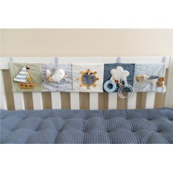 Hecho de diferentes materiales para tocar y sentir con muchas actividades para explorar. ¡Encuentra el espejo detrás de la mariquita! ¡Columpia a la abejita! ¡Y siente la superficie del anillo de dentición!
