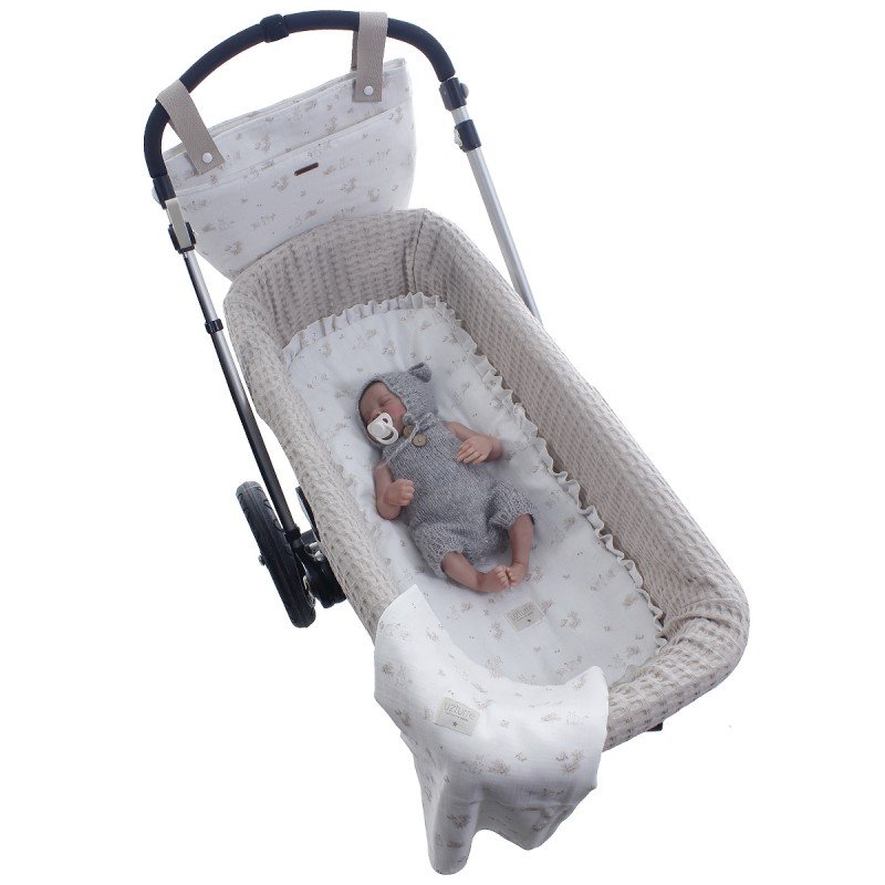 Este pack incluye la bajera de capazo y la muselina de la misma colección.