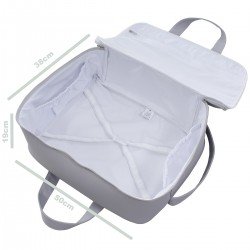 Su diseño elegante y novedoso te permite llevar todo lo esencial tanto para ti como para tu bebé, asegurado con un práctico cierre con cremallera. Lavable a mano o a máquina. Medidas aproximadas: 19 x 50 x 38 cm.