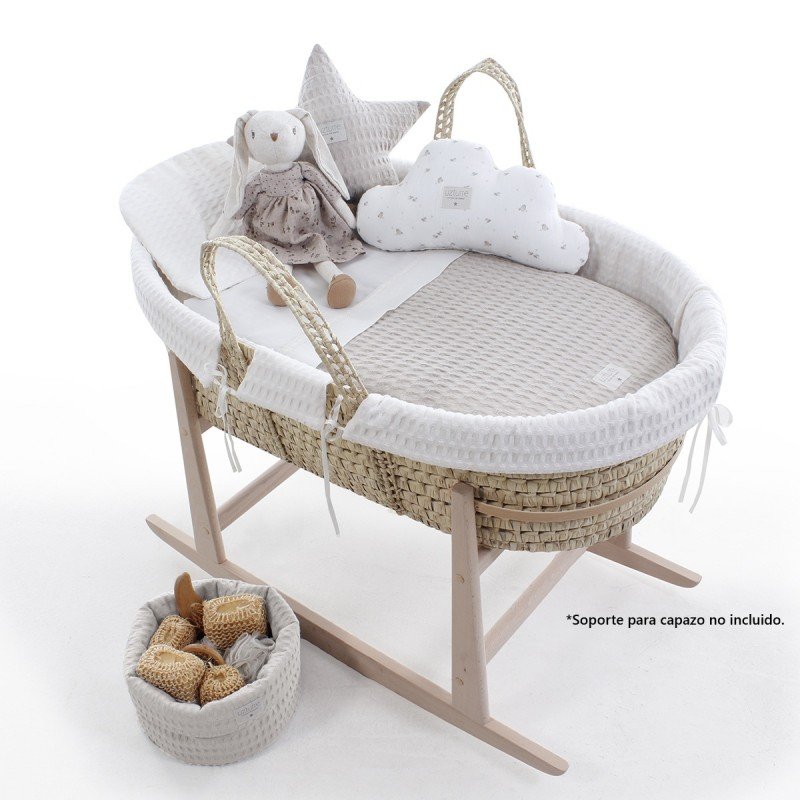 Oeko-Tex Standard 100 certificada. Diseñado y fabricado en España con materiales y tejidos de la más alta calidad. Medidas del capazo: 78x38x25 cm. Medidas colchón: 77x35x5 cm.
